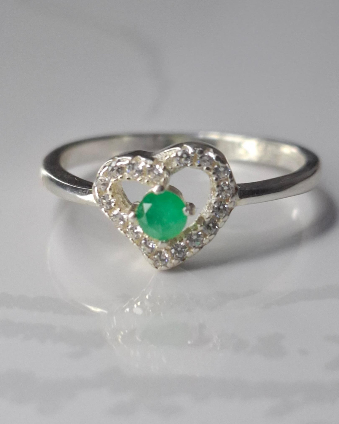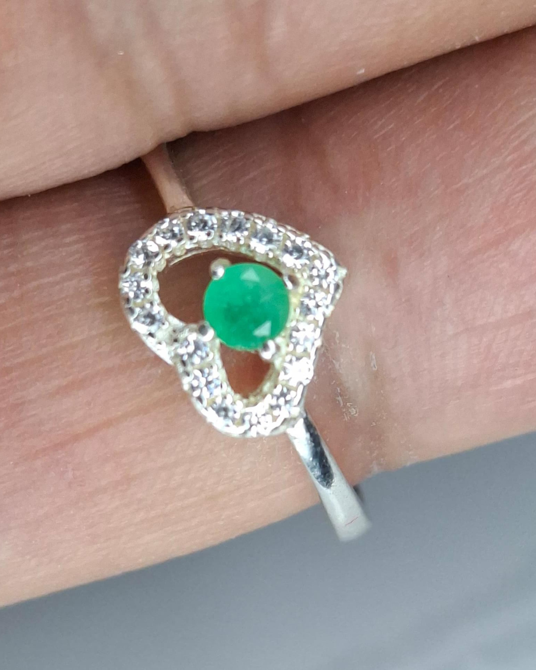 Este anillo en plata ley 925 combina un diseño romántico con el brillo sutil de las circonitas que rodean un corazón abierto. En el centro, una esmeralda natural resalta como símbolo de amor y conexión. Su forma delicada y su acabado brillante lo convierten en una joya perfecta para regalar en ocasiones especiales o llevar como un detalle lleno de significado.