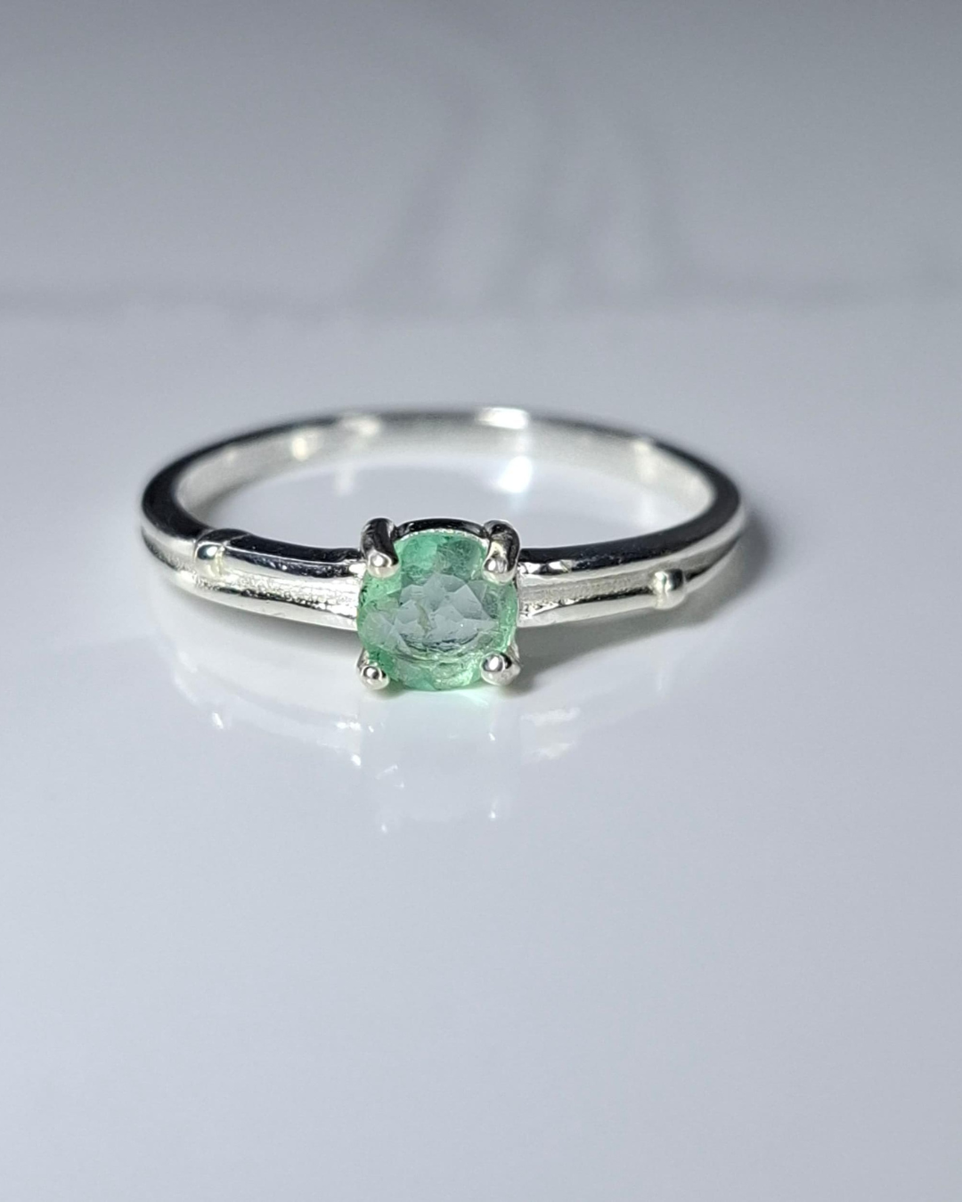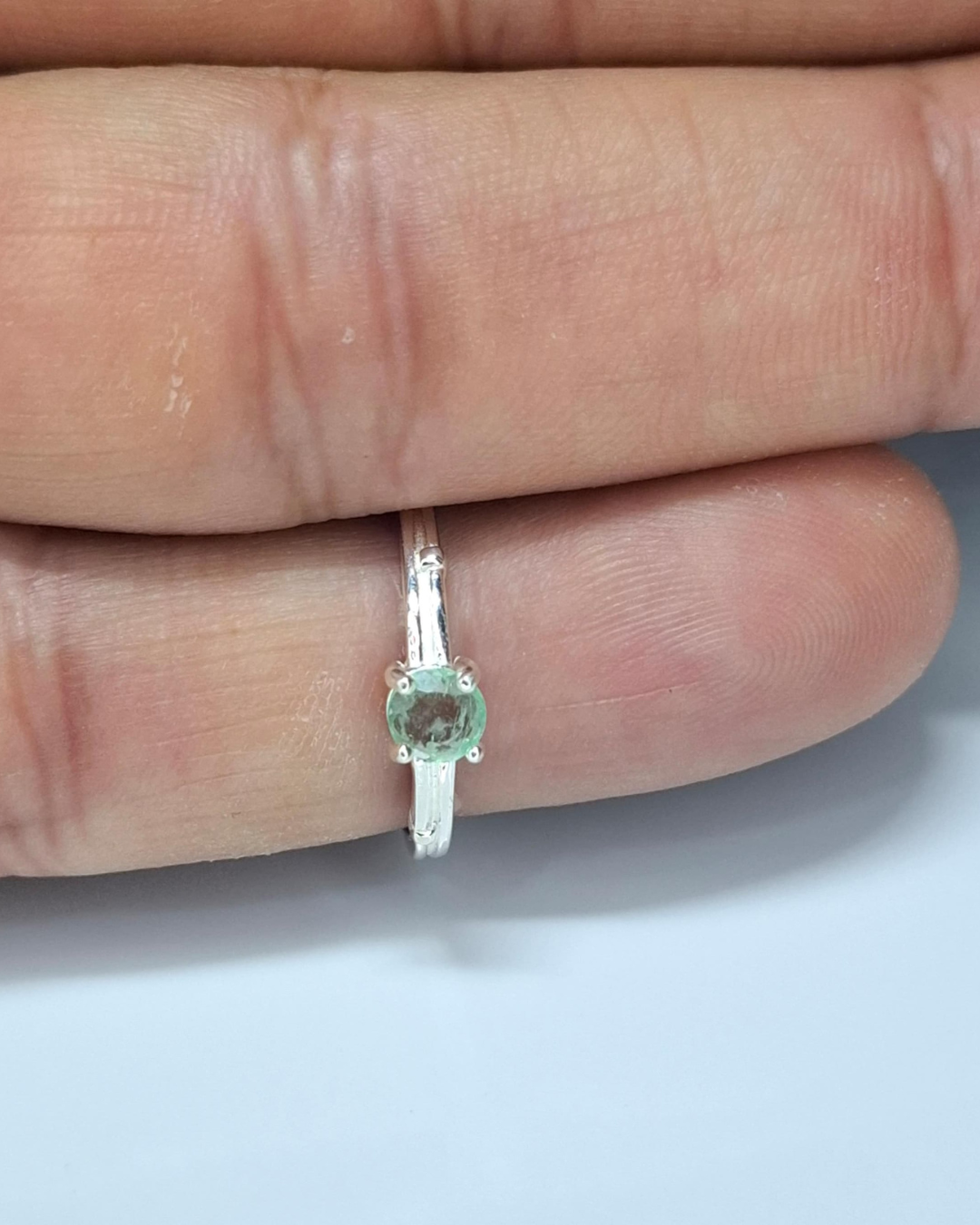 Este anillo está elaborado en plata de ley 925, garantizando durabilidad y calidad superior. Su protagonista es una esmeralda natural colombiana, reconocida mundialmente por su pureza y brillo excepcionales. Esta gema cristalina aporta un toque de elegancia y distinción, ideal para quienes buscan una joya auténtica y sofisticada. Perfecto para ocasiones especiales o para realzar el estilo diario con un detalle único y valioso.