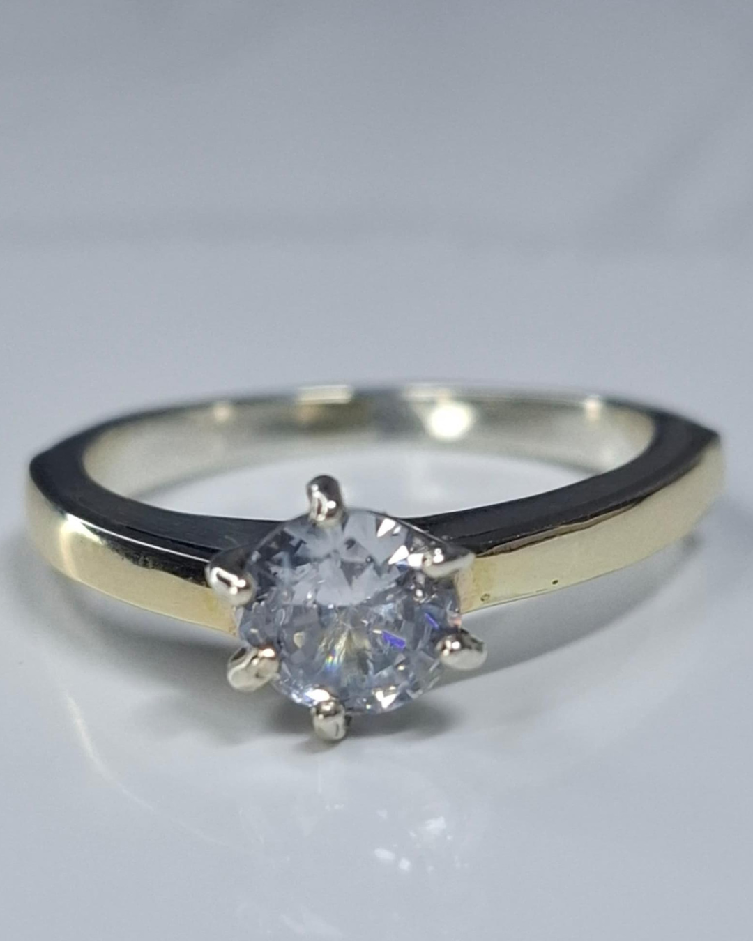 Anillo de plata con lamina de oro de 7k y circon suizo