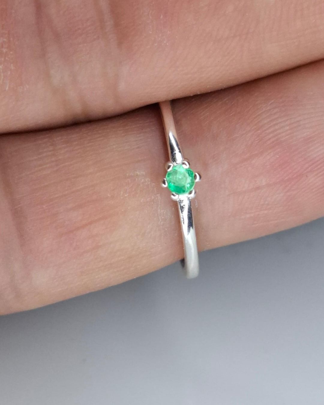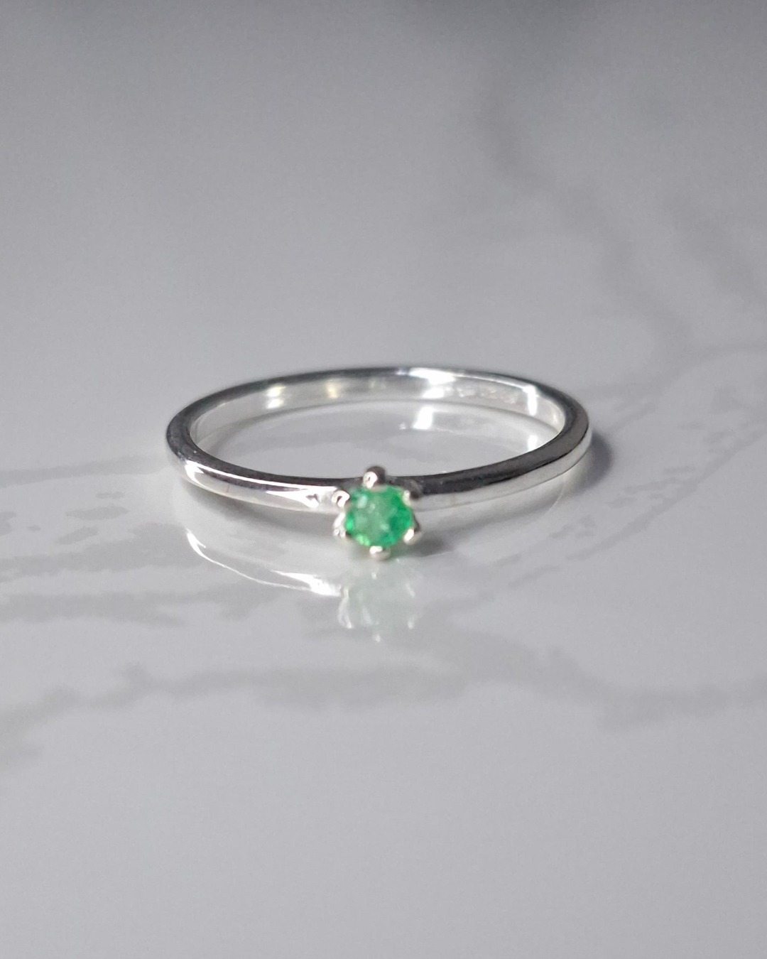 Este anillo de estilo minimalista está elaborado en plata ley 925 y destaca por su esmeralda natural de corte fino, cuidadosamente engastada en un diseño liviano y delicado. Ideal para quienes buscan una joya discreta pero significativa, perfecta para el uso diario o para combinar con otras piezas sin perder elegancia.