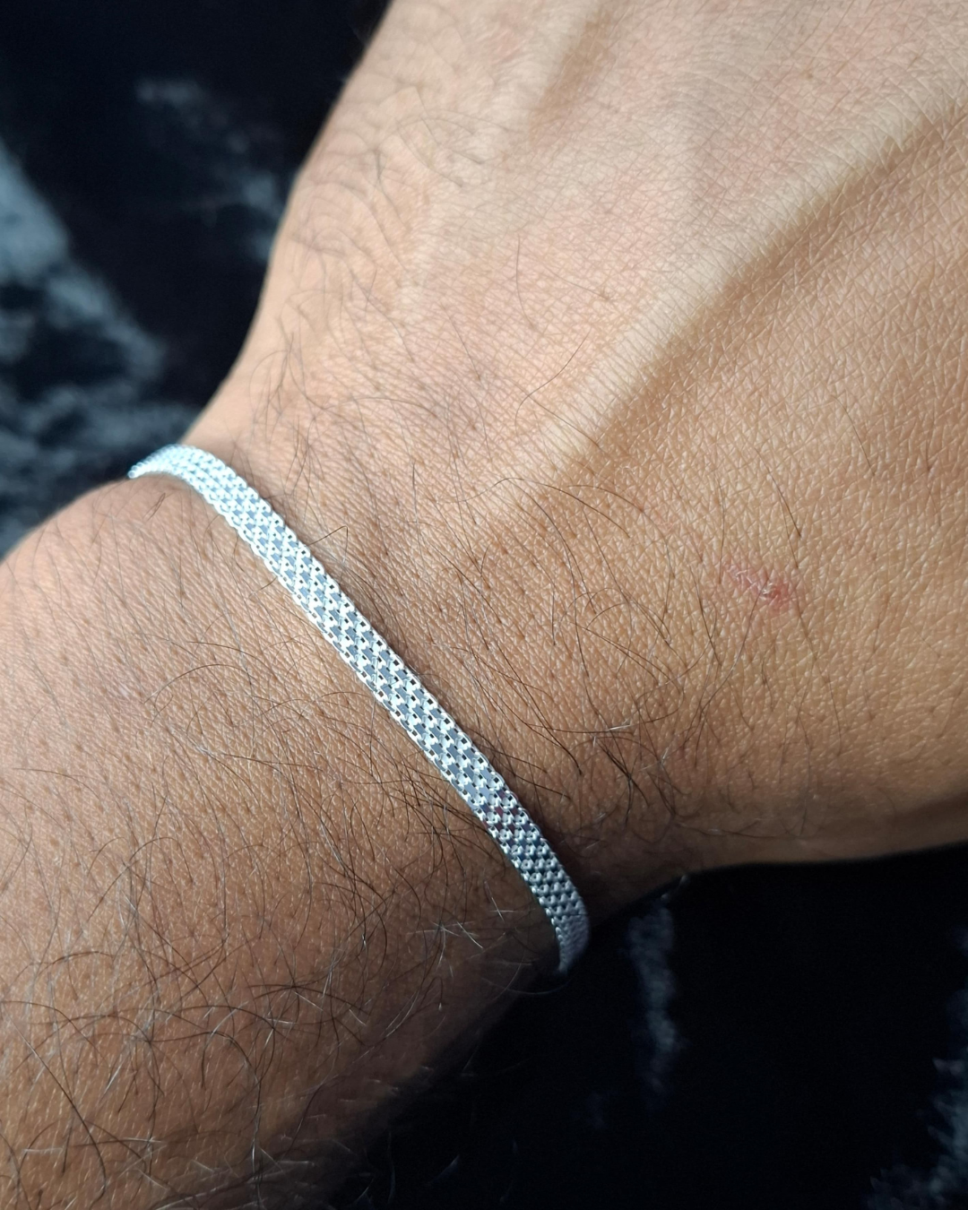 Esta pulsera chinesca está elaborada en plata italiana 925, garantizando calidad y durabilidad. Con una longitud de 19.5 cm y un grosor de 3 mm, ofrece un diseño elegante y resistente, ideal para uso diario o ocasiones especiales. Su acabado fino y detallado refleja la artesanía experta, aportando un toque sofisticado a cualquier estilo.