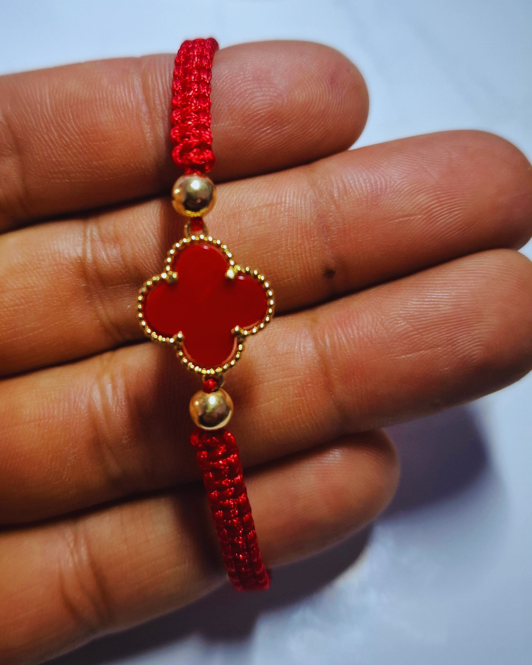 Pulsera tejida 0.27 gr oro 18k y herraje en rodio trébol